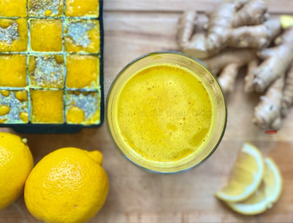 1. Si vous possédez un extracteur de jus et avez des racines de gingembre et de curcuma bio, rien de plus simple !